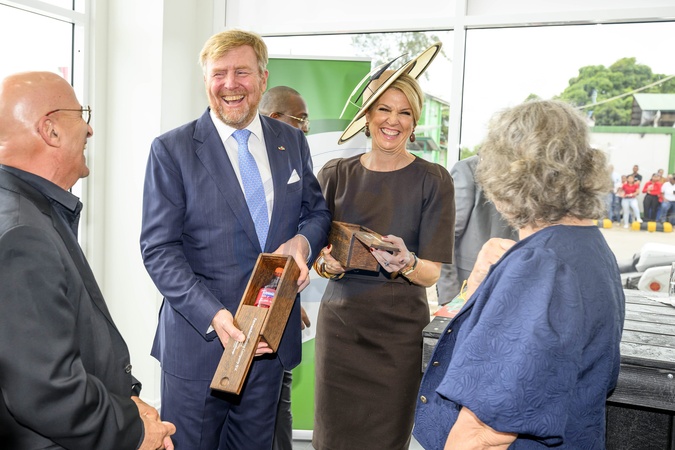 Paramaribo, The Netherlands, 2025-12-02 14:44:38PARAMARIBO, December 2, 2025, Fernandes. King Willem-Alexander and Queen Máxima are paying a state visit to the Republic of Suriname at the invitation of President Jennifer Geerlings-Simons. At the Fernandes family business's bottling plant, King Willem-Alexander and Queen Máxima will be given a tour of the modern facility, where they will be given an explanation of the bottling process for Suriname's most famous drink. PHOTO: NLBeeld/Patrick van Emst, Credit:Avalon