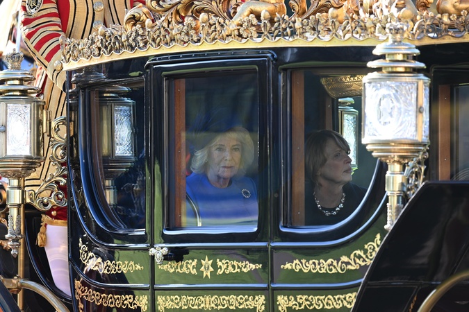 Queen Camilla, with Elke Büdenbender. // The President of the Federal Republic of Germany, accompanied by Ms. Elke Büdenbender, paying a State Visit to the United Kingdom as the guests of Their Majesties The King and Queen., Credit:SWNS / Avalon