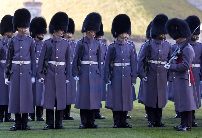 The Grenadier Guards line up for inspection ahead of the arrival of German President Frank-Walter Steinmeier and his wife Elke Budenbender for a ceremonial welcome at Windsor Castle, Berkshire, on day one of the state visit to the UK by the President of the Federal Republic of Germany. Picture date: Wednesday December 3, 2025., Credit:Andrew Matthews / Avalon