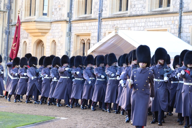 State visit of the President of Germany Frank-Walter Steinmeier along with his wife Elke Büdenbender visit Windsor Castle on day one of the state visit In the Quadrangle of Windsor Castle, a Guard of Honour will give a Royal Salute and theregimental Band will play the German and British National Anthems. The Federal President,accompanied by The King, will inspect the Guard of Honour, before rejoining The Queen and Ms.Büdenbender, together with The Prince and Princess of Wales, to view the military Rank andMarch past., Credit:Ian Vogler / Avalon