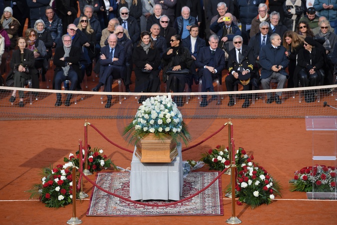 Nicola Pietrangeli's funeral chapel. Pictured is center court, with Tennis Federation President Angelo Binaghi in the center. Rome, Foro Italico, Dec 3rd 2025, Credit:Mimmo Chianura/AGF / Avalon