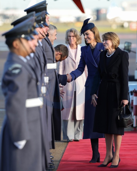 03/12/2025. Heathrow, UK. The Federal President and Ms. Büdenbender are greeted by Their Royal Highnesses The Prince and Princess of Wales, on behalf of His Majesty The King, at Heathrow Airport., Credit:Pete Maclaine / Avalon