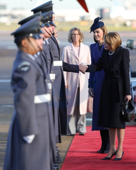 03/12/2025. Heathrow, UK. The Federal President and Ms. Büdenbender are greeted by Their Royal Highnesses The Prince and Princess of Wales, on behalf of His Majesty The King, at Heathrow Airport., Credit:Pete Maclaine / Avalon