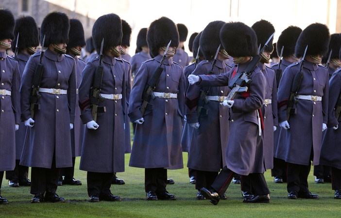 Grenadier guards form up in the Quadrangle ahead of a ceremonial welcome at Windsor Castle, Berkshire, on day one of the state visit to the UK by the President of the Federal Republic of Germany. Picture date: Wednesday December 3, 2025., Credit:Andrew Matthews / Avalon