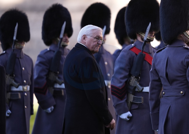 German President Frank-Walter Steinmeier inspects a Guard of Honour during the ceremonial welcome at Windsor Castle, Berkshire, on day one of the state visit to the UK by the President of the Federal Republic of Germany. Picture date: Wednesday December 3, 2025., Credit:Andrew Matthews / Avalon