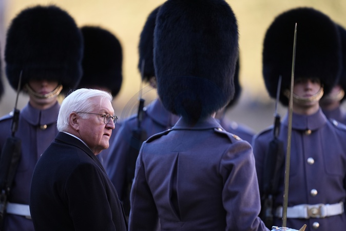 German President Frank-Walter Steinmeier inspects a Guard of Honour during the ceremonial welcome at Windsor Castle, Berkshire, on day one of the state visit to the UK by the President of the Federal Republic of Germany. Picture date: Wednesday December 3, 2025., Credit:Andrew Matthews / Avalon