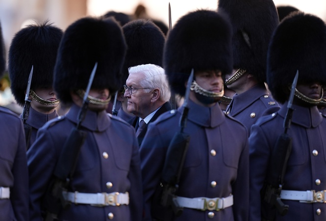 German President Frank-Walter Steinmeier inspects a Guard of Honour during the ceremonial welcome at Windsor Castle, Berkshire, on day one of the state visit to the UK by the President of the Federal Republic of Germany. Picture date: Wednesday December 3, 2025., Credit:Andrew Matthews / Avalon