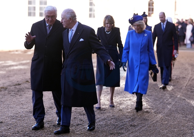 German President Frank-Walter Steinmeier and King Charles III during the ceremonial welcome at Windsor Castle, Berkshire, on day one of the state visit to the UK by the President of the Federal Republic of Germany. Picture date: Wednesday December 3, 2025., Credit:Andrew Matthews / Avalon