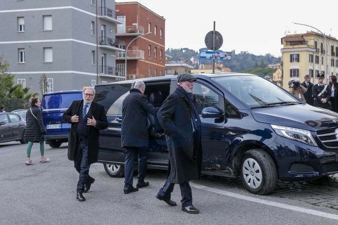funeral of Nicola Pietrangeli, pictured Marco and Filippo Pietrangeli . Rome, Ponte Milvio, Gran Madre di Dio Church, Dec 3rd 2025, Credit:/AGF / Avalon