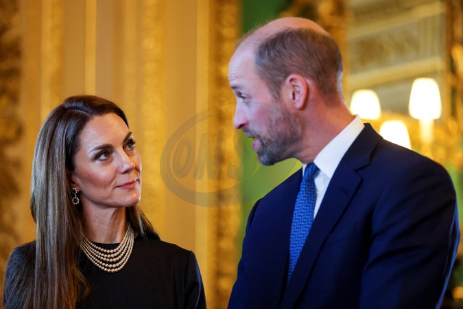 Britain's Prince William, Prince of Wales, and Catherine, Princess of Wales react as they view items on display relating to Germany, during a visit to the Royal Collection exhibition in the Green Drawing Room at Windsor Castle, during German President Frank-Walter Steinmeier's state visit to Britain, in Windsor, Britain, December 3, 2025. REUTERS/Hannah, Credit:Hannah McKay / Avalon