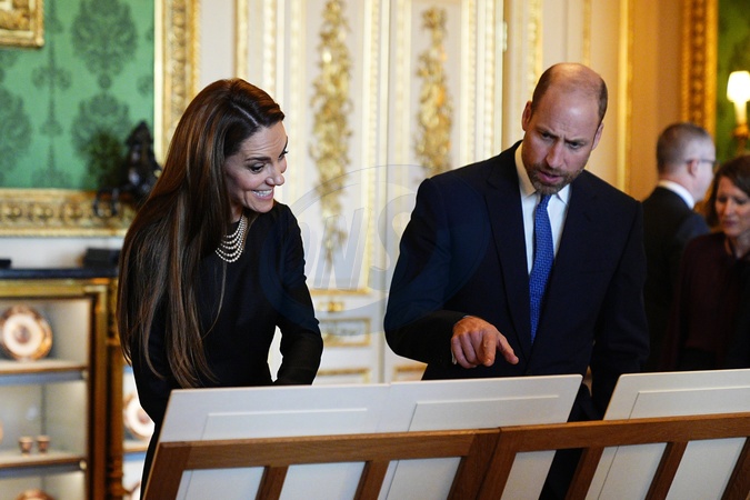 The Prince and Princess of Wales view exhibits from the Royal Collection in the Green Drawing room at Windsor Castle, Berkshire, on day one of the state visit to the UK by the President of the Federal Republic of Germany. Picture date: Wednesday December 3, 2025., Credit:Aaron Chown / Avalon