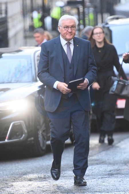 German President Frank-Walter Steinmeier arrives for a meeting with British Prime Minister Sir Keir Starmer and wife Lady Victoria Starmer in Downing Street, London, England, UK on Wednesday 03 December, 2025 as part of a State Visit., Credit:Justin Ng / Avalon