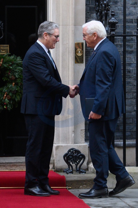 German President Frank-Walter Steinmeier arrives for a meeting with British Prime Minister Sir Keir Starmer and wife Lady Victoria Starmer in Downing Street, London, England, UK on Wednesday 03 December, 2025 as part of a State Visit., Credit:Justin Ng / Avalon