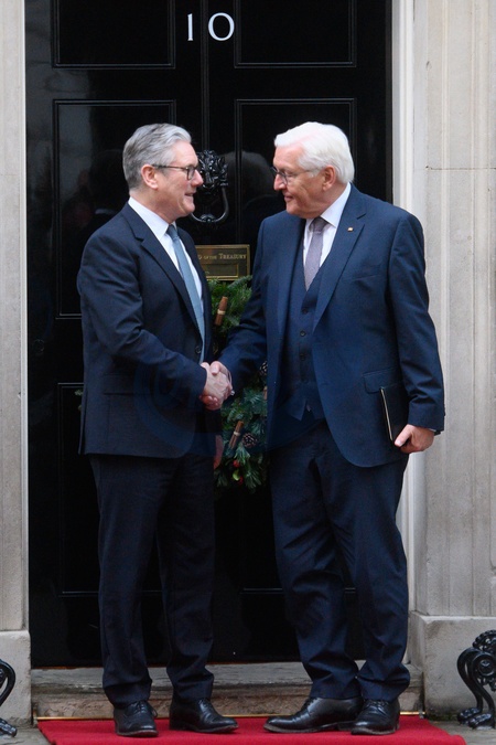 German President Frank-Walter Steinmeier arrives for a meeting with British Prime Minister Sir Keir Starmer and wife Lady Victoria Starmer in Downing Street, London, England, UK on Wednesday 03 December, 2025 as part of a State Visit., Credit:Justin Ng / Avalon