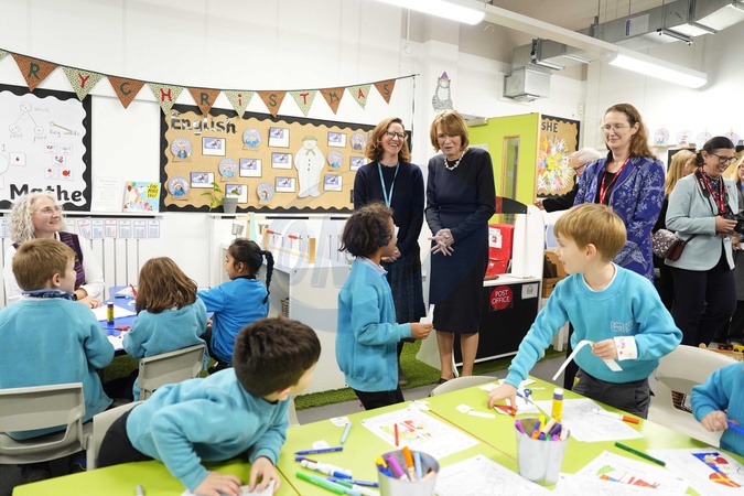Elke Budenbender, wife of German President Frank-Walter Steinmeier, during a visit to the Judith Kerr Primary School in Herne Hill, south east London, on day one of the state visit to the UK by the President of the Federal Republic of Germany. Picture date: Wednesday December 3, 2025., Credit:Jordan Pettitt / Avalon
