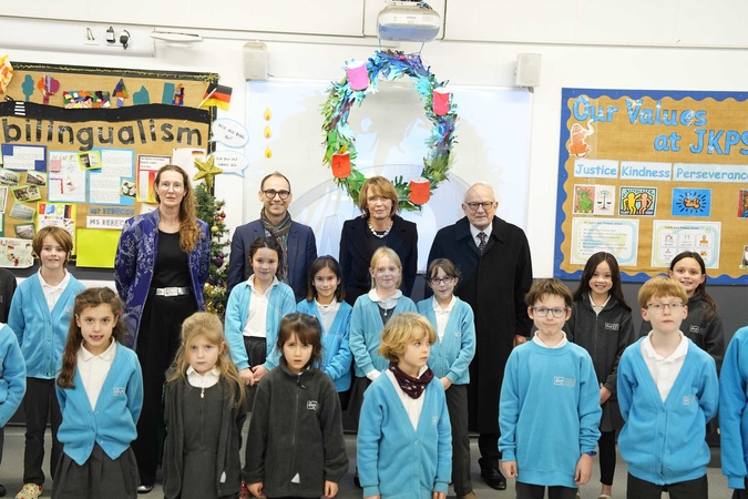 Elke Budenbender, wife of German President Frank-Walter Steinmeier, during a visit to the Judith Kerr Primary School in Herne Hill, south east London, on day one of the state visit to the UK by the President of the Federal Republic of Germany. Picture date: Wednesday December 3, 2025., Credit:Jordan Pettitt / Avalon