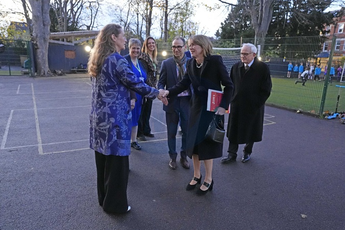 Elke Budenbender, wife of German President Frank-Walter Steinmeier, during a visit to the Judith Kerr Primary School in Herne Hill, south east London, on day one of the state visit to the UK by the President of the Federal Republic of Germany. Picture date: Wednesday December 3, 2025., Credit:Jordan Pettitt / Avalon