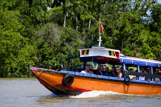 Paramaribo, The Netherlands, 2025-12-03 14:07:44PARAMARIBO, December 3, 2025. King Willem-Alexander and Queen Máxima are paying a state visit to the Republic of Suriname at the invitation of President Jennifer Geerlings-Simons. This includes a boat trip on the Suriname River and the Commewijne River. During the trip, the Royal Couple will receive an explanation of the value of the rivers (water) and mangroves (forest) to Suriname from a spiritual, economic, and ecological perspective. PHOTO: NLBeeld/Patrick van Emst, Credit:Avalon