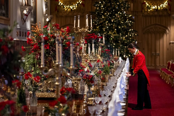 EMBARGOED TO 2000 WEDNESDAY DECEMBER 3 A member of Royal Household staff during table preparations before the state banquet for the German President Frank-Walter Steinmeier and his wife Elke Budenbender, at Windsor Castle, Berkshire, on day one of their state visit to the UK. Picture date: Wednesday December 3, 2025., Credit:Aaron Chown / Avalon