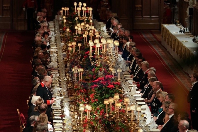 Britain's King Charles III delivers a speech during a State Banquet at Windsor Castle in Windsor, on December 3, 2025, the first day of a three day state visit by the German President. President Frank-Walter Steinmeier received a ceremonial welcome to Britain Wednesday as his state visit got into full swing -- the first by Germany's official head of state in 27 years., Credit:CARLOS JASSO / Avalon