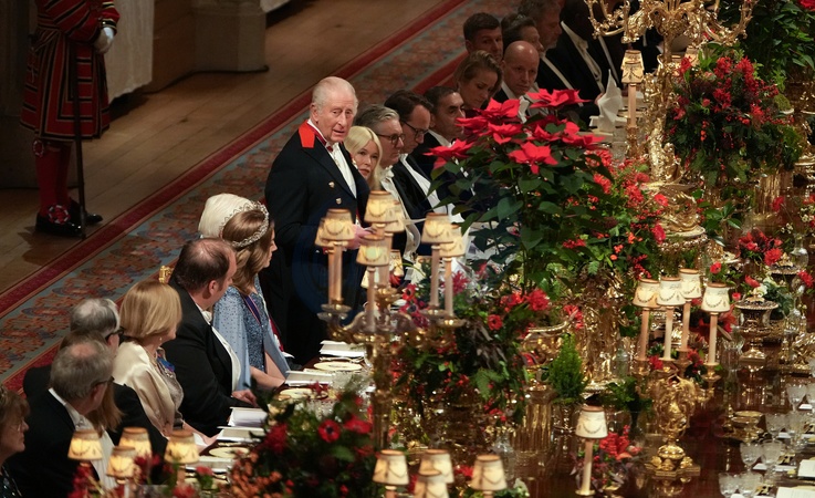 Britain's King Charles III delivers a speech during a State Banquet at Windsor Castle in Windsor, on December 3, 2025, the first day of a three day state visit by the German President. President Frank-Walter Steinmeier received a ceremonial welcome to Britain Wednesday as his state visit got into full swing -- the first by Germany's official head of state in 27 years., Credit:CARLOS JASSO / Avalon