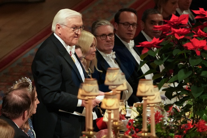 Germany's President Frank-Walter Steinmeier delivers a speech during a State Banquet at Windsor Castle in Windsor, on December 3, 2025, the first day of a three day state visit by the German President. President Frank-Walter Steinmeier received a ceremonial welcome to Britain Wednesday as his state visit got into full swing -- the first by Germany's official head of state in 27 years., Credit:CARLOS JASSO / Avalon