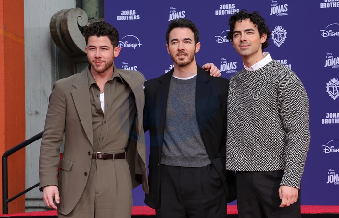 03 December 2025 . Hollywood, California - Nick Jonas, Kevin Jonas, Joe Jonas At Jonas Brothers Hand And Footprint In Cement Ceremony held at The TCL Chinese Theatre in Hollywood., Credit:Sadou Faye / Avalon