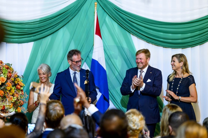 Paramaribo, The Netherlands, 2025-12-03 19:03:46PARAMARIBO, December 3, 2025, Dutch Residence. King Willem-Alexander and Queen Máxima are paying a state visit to the Republic of Suriname at the invitation of President Jennifer Geerlings-Simons. The third and final day of the state visit will conclude with a reception for the Dutch community. At the residence, the Royal Couple will speak with Dutch people living or working in Suriname. PHOTO: NLBeeld/Patrick van Emst, Credit:Avalon
