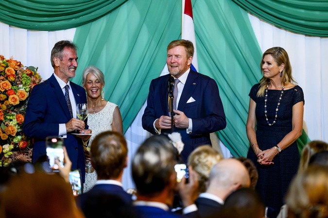 Paramaribo, The Netherlands, 2025-12-03 19:04:43PARAMARIBO, December 3, 2025, Dutch Residence. King Willem-Alexander and Queen Máxima are paying a state visit to the Republic of Suriname at the invitation of President Jennifer Geerlings-Simons. The third and final day of the state visit will conclude with a reception for the Dutch community. At the residence, the Royal Couple will speak with Dutch people living or working in Suriname. PHOTO: NLBeeld/Patrick van Emst, Credit:Avalon