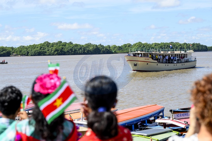Paramaribo, The Netherlands, 2025-12-03 10:38:30PARAMARIBO, December 3, 2025, Mi Gudu. King Willem-Alexander and Queen Máxima are paying a state visit to the Republic of Suriname at the invitation of President Jennifer Geerlings-Simons. This includes a boat trip on the Suriname River and the Commewijne River. During the trip, the Royal Couple will receive an explanation of the value of the rivers (water) and mangroves (forest) to Suriname from a spiritual, economic, and ecological perspective. PHOTO: NLBeeld/Patrick van Emst, Credit:Avalon