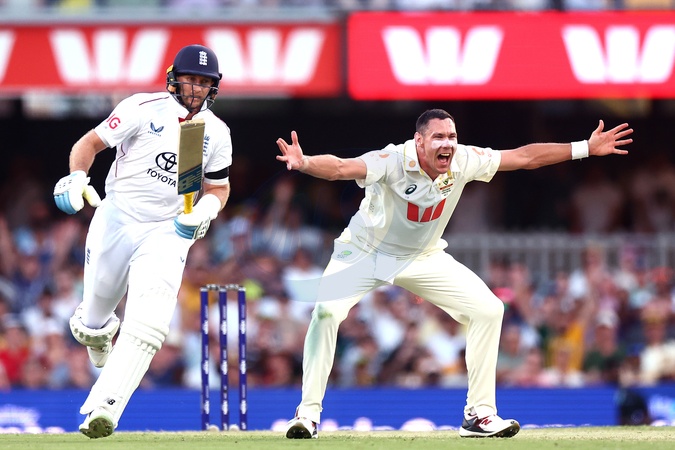 Scott Boland of Australia appeals unsuccessfully during the NRMA Insurance Ashes Second Test Day 1 Series match Australia vs England at The Gabba, Brisbane Cricket Ground, Brisbane, Australia, 4th December 2025, Credit:Patrick Hoelscher/News Images / Avalon