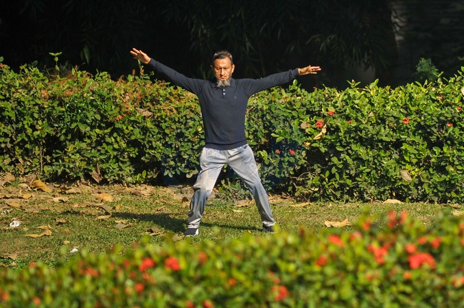 Chattogram, Bangladesh: Senior Citizens gather for a exercise routine on a sunny winter morning at the Chattogram War Cemetery Garden in Chattogram, Bangladesh, reflecting a growing emphasis on active ageing and community well-being., Credit:Md Rafayat Haque Khan / Avalon