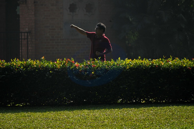 Chattogram, Bangladesh: Senior Citizens gather for a exercise routine on a sunny winter morning at the Chattogram War Cemetery Garden in Chattogram, Bangladesh, reflecting a growing emphasis on active ageing and community well-being., Credit:Md Rafayat Haque Khan / Avalon