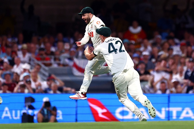Josh Inglis of Australia celebrates the runout of Ben Stokes of England during the NRMA Insurance Ashes Second Test Day 1 Series match Australia vs England at The Gabba, Brisbane Cricket Ground, Brisbane, Australia, 4th December 2025, Credit:Patrick Hoelscher/News Images / Avalon