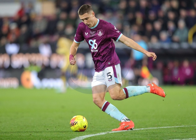 Maxime Esteve of Burnley in action during the Premier League match Burnley vs Crystal Palace at Turf Moor, Burnley, United Kingdom, 3rd December 2025, Credit:Richard Bierton/News Images / Avalon