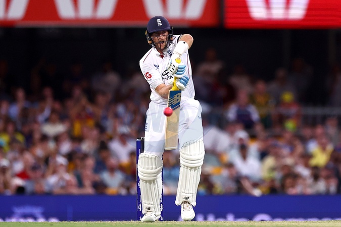 Joe Root of England bats during the NRMA Insurance Ashes Second Test Day 1 Series match Australia vs England at The Gabba, Brisbane Cricket Ground, Brisbane, Australia, 4th December 2025, Credit:Patrick Hoelscher/News Images / Avalon