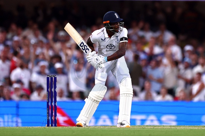 Jofra Archer of England bats during the NRMA Insurance Ashes Second Test Day 1 Series match Australia vs England at The Gabba, Brisbane Cricket Ground, Brisbane, Australia, 4th December 2025, Credit:Patrick Hoelscher/News Images / Avalon