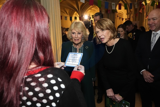 Queen Camilla (left) and Elke Budenbender meet volunteers from the Citizen Hub during a reception for volunteering charities in Windsor Castle, Berkshire, on day two of the state visit to the UK by the President of the Federal Republic of Germany. Picture date: Thursday December 4, 2025., Credit:Avalon.red / Avalon