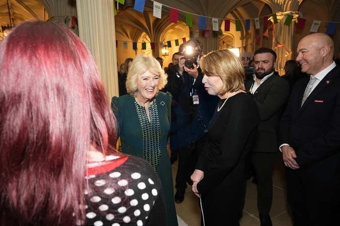 Queen Camilla (left) and Elke Budenbender meet volunteers from the Citizen Hub during a reception for volunteering charities in Windsor Castle, Berkshire, on day two of the state visit to the UK by the President of the Federal Republic of Germany. Picture date: Thursday December 4, 2025., Credit:Avalon.red / Avalon