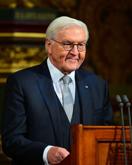President of the Federal Republic of Germany Frank-Walter Steinmeier addresses members of the House of Lords and the House of Commons in the Royal Gallery at the Palace of Westminster.President of the Federal Republic of Germany Frank-Walter Steinmeier State Visit, Day 2, Address to Parliament, Palace of Westminster, London, UK - 04 Dec 2025, Credit:Victoria Jones/Shutterstock / Avalon