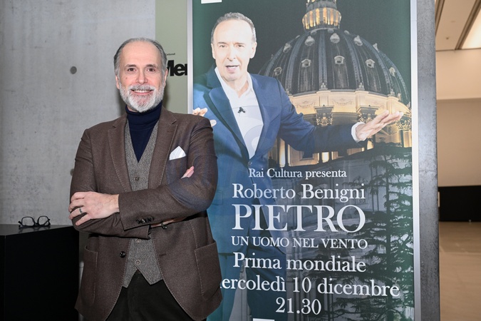 Rai Cultura presentation of Benigni's 'Pietro Un Uomo Nel Vento' monologue dedicated to the history of St. Peter