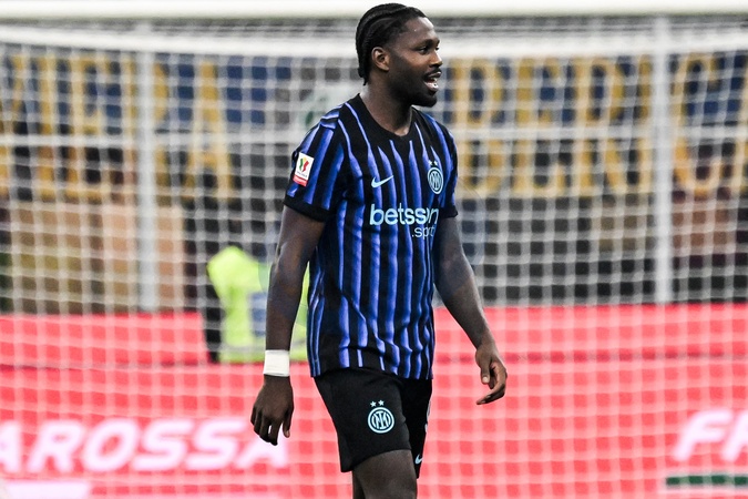 San Siro Stadium. Round of 16 of the Coppa Italia Freccia Rossa. Inter vs. Venezia. Inter's third goal with Marcus Thuram. Milan, Dec 3rd 2025, Credit:Nicola Marfisi/AGF / Avalon