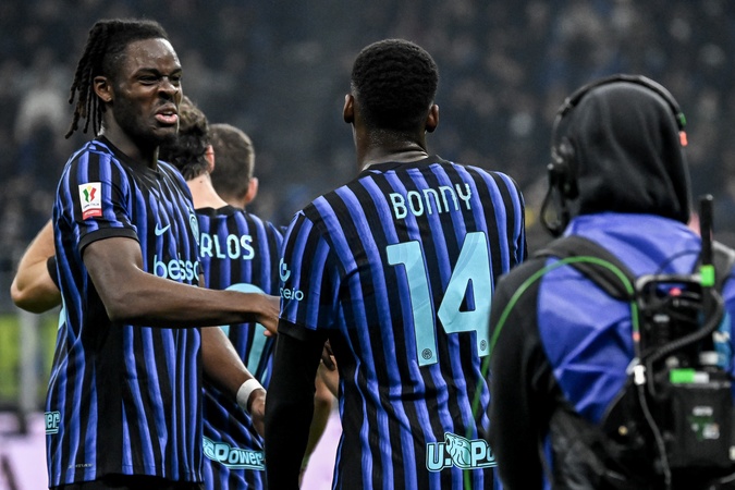 San Siro Stadium. Round of 16 of the Coppa Italia Freccia Rossa. Inter vs. Venezia. Inter's fifth goal with Ange-Yoan Bonny. Milan, Dec 3rd 2025, Credit:Nicola Marfisi/AGF / Avalon