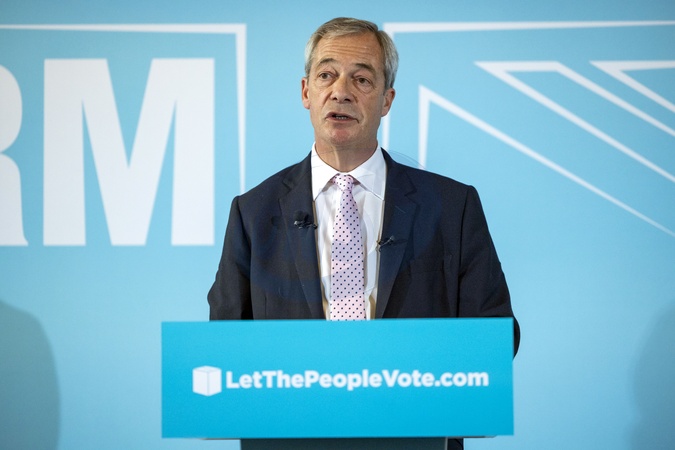 Nigel Farage MP spoke at a Reform UK press conference in Westminster, responding to the cancellation of upcoming elections. The Labour government plans to delay Mayoral elections in Essex, Hampshire and the Solent, Sussex and Brighton, and Norfolk and Suffolk by at least two years., Credit:Abdullah Bailey / Avalon