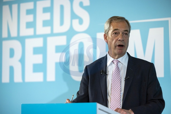 Nigel Farage MP spoke at a Reform UK press conference in Westminster, responding to the cancellation of upcoming elections. The Labour government plans to delay Mayoral elections in Essex, Hampshire and the Solent, Sussex and Brighton, and Norfolk and Suffolk by at least two years., Credit:Abdullah Bailey / Avalon