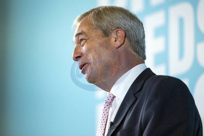 Nigel Farage MP spoke at a Reform UK press conference in Westminster, responding to the cancellation of upcoming elections. The Labour government plans to delay Mayoral elections in Essex, Hampshire and the Solent, Sussex and Brighton, and Norfolk and Suffolk by at least two years., Credit:Abdullah Bailey / Avalon