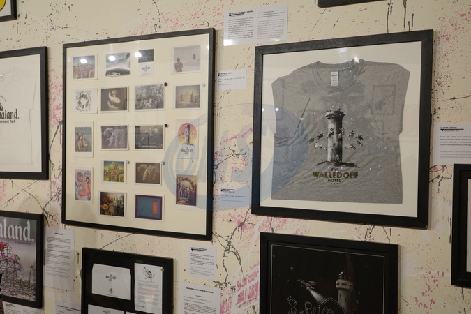 Authorities and the public attend the inauguration of the "Banksy Modeste Collection" exhibition at the Agrigento Chamber of Commerce. Pictured is a selection of works and materials exhibited in the section dedicated to the Walled Off Hotel in Bethlehem. Agrigento. Italy 03 December 2025, Credit:Christian Bonaviri / Avalon