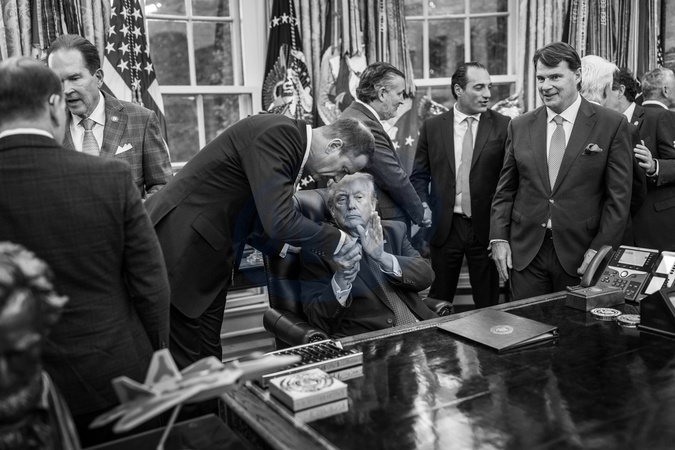 President Donald Trump speaks with guests after making an announcement on fuel economy standards in the Oval Office, Wednesday, December 3, 2025., Credit:Molly Riley / Avalon