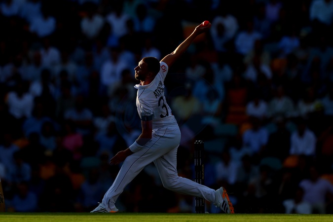 Gus Atkinson of England bowls during the NRMA Insurance Ashes Second Test Day 2 Australia vs England at The Gabba, Brisbane Cricket Ground, Brisbane, Australia, 5th December 2025, Credit:Pat Hoelscher/News Images / Avalon