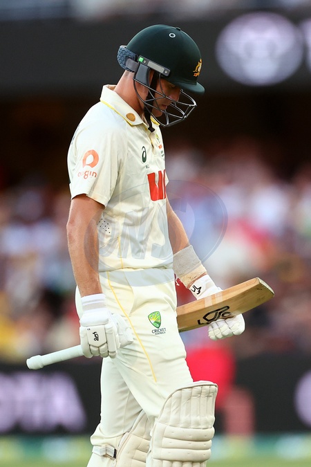 Marnus Labushchagne of Australia is dismissed during the NRMA Insurance Ashes Second Test Day 2 Australia vs England at The Gabba, Brisbane Cricket Ground, Brisbane, Australia, 5th December 2025, Credit:Pat Hoelscher/News Images / Avalon